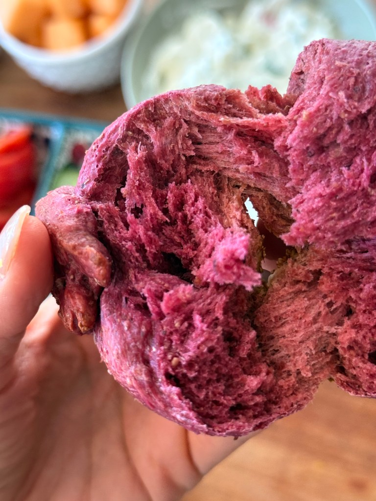 nota: La receta del brioche la saque de la aplicación cookidoo de la thermomix, si tienes la thermomix puedes buscarla como :”Brioche de remolacha” y seguir las instrucciones.