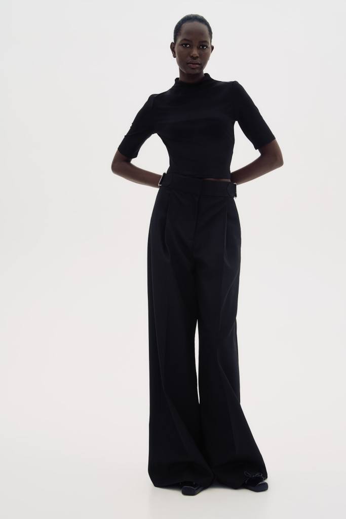 Initially, I reached for my faithful black Aritzia trousers—effortless, tailored, the kind of staple that never lets me down—and a mid-sleeve turtleneck. My mind went straight to black for the monochrome base. My wardrobe is filled with neutrals, but wearing white or beige on bottom didn’t feel right for the day’s chilly breeze. I’ve also done the denim-on-denim thing recently, so black it was.