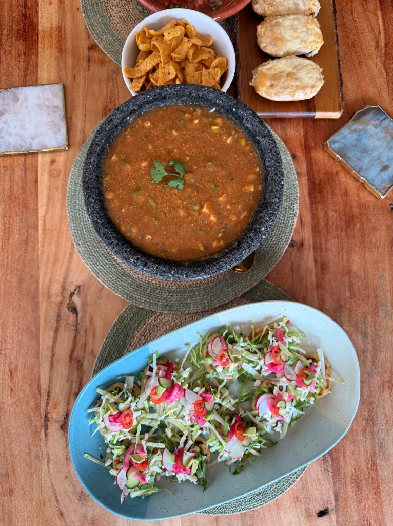 Then came the huevos al albañil—poached eggs in a spicy tomato sauce with beans in a soup-like base. It’s hearty, spicy, and warm, a true comfort dish.