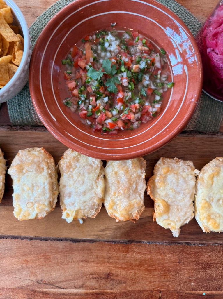 We made molletes, which is bread topped with refried beans and finished with pico de gallo that we also made by hand. Molletes are a classic Mexican breakfast food—simple, filling, and full of flavor.