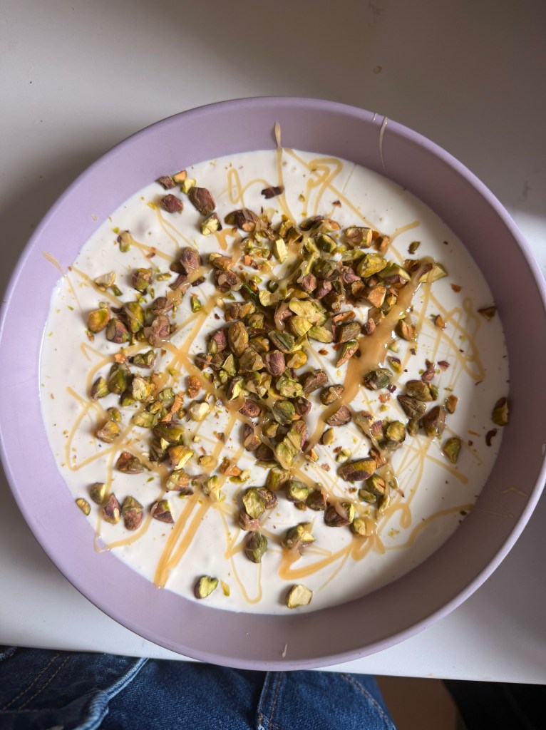 - Whipped ricotta and Greek yogurt with raw honey and crushed pistachio, served with homemade seed and dried strawberry crackers