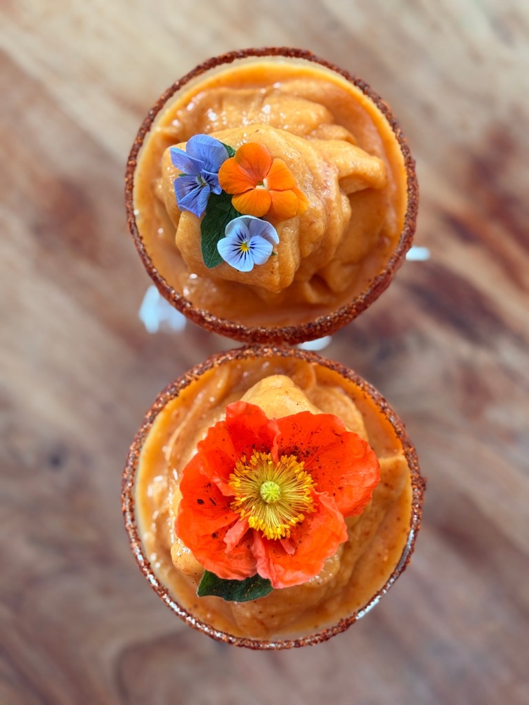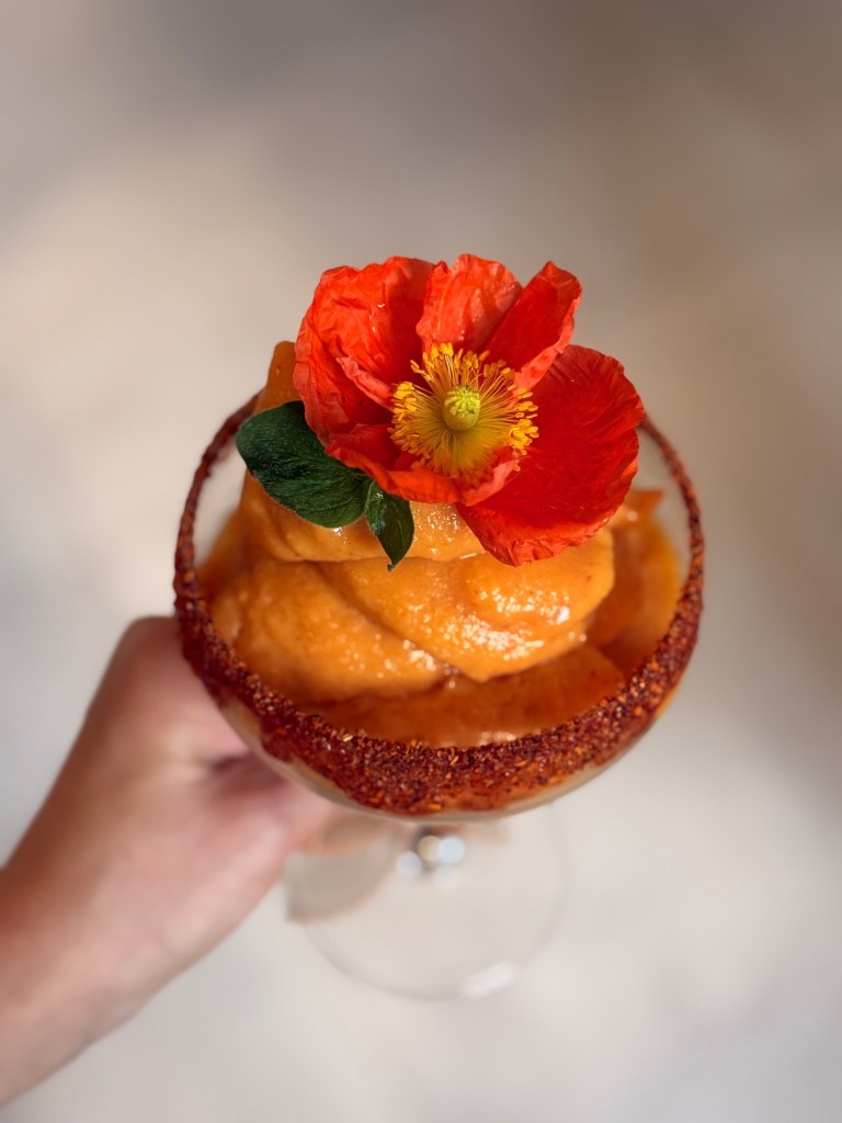 - And the finale: a frozen mezcal mango margarita with chamoy, spicy, sweet, and addictive