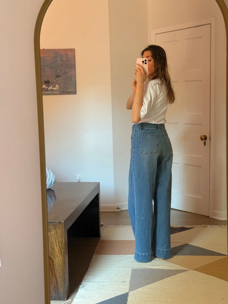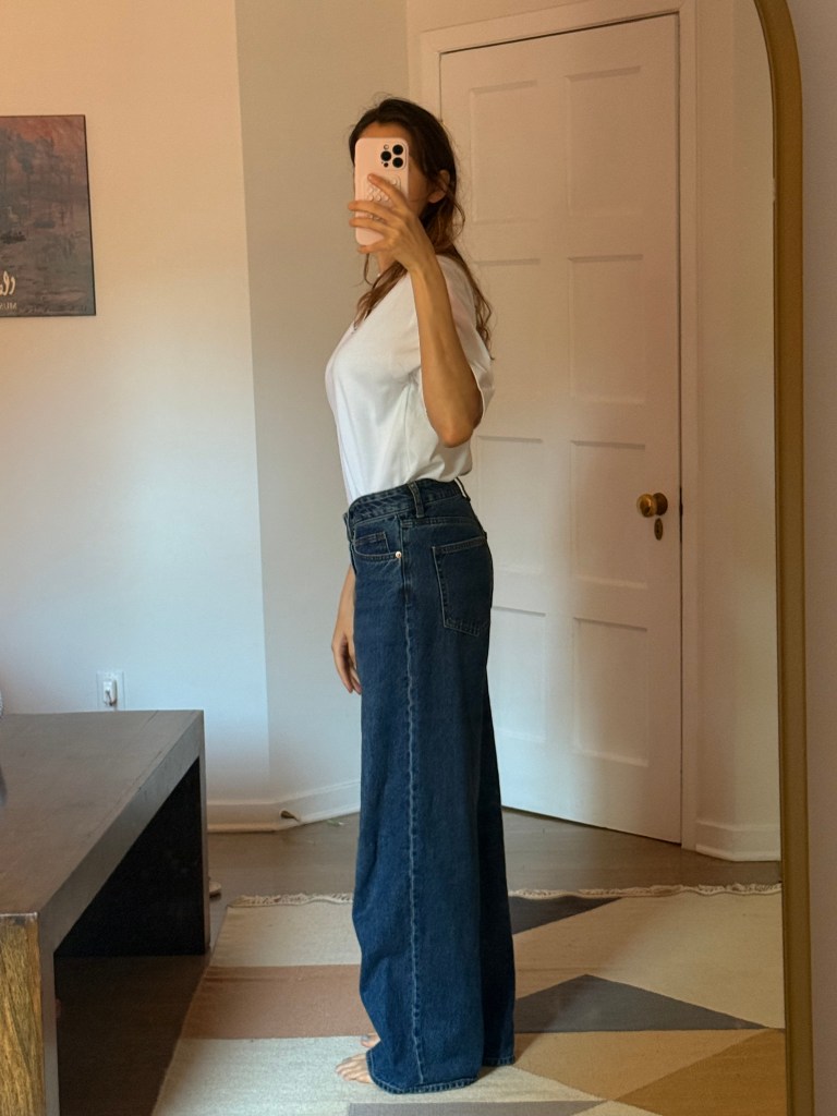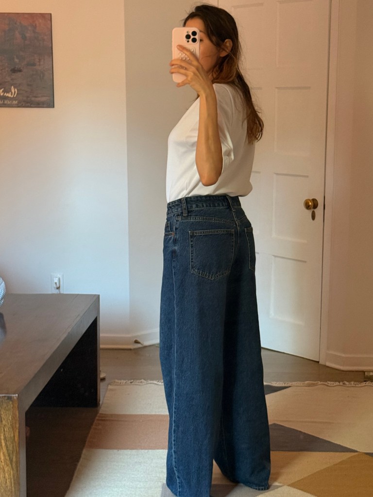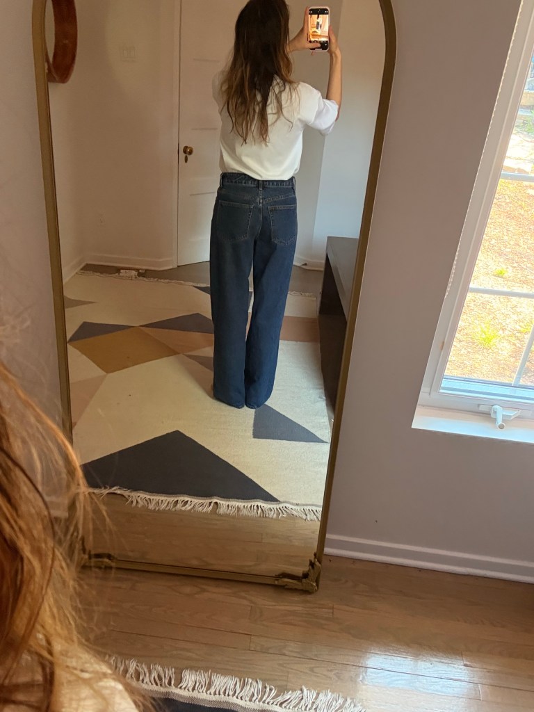I was excited to play with what I had and start curating a few spring looks. But surprise: neutrals, neutrals, and more neutrals. Beige, white, maybe some navy. Nothing bold, nothing bright—and worst of all, I realized my jeans situation was tragic. Too small, too big, too skinny, too stiff. Even though I love wearing whatever feels right regardless of trends, these jeans just didn’t feel like me anymore. I wanted something looser, cooler, and more 2025.