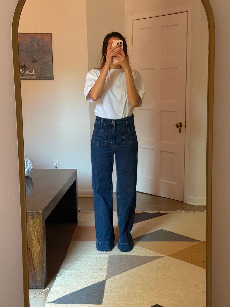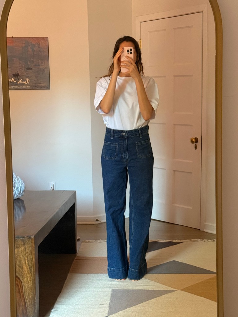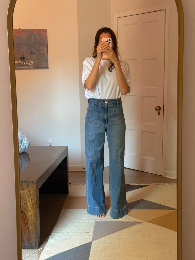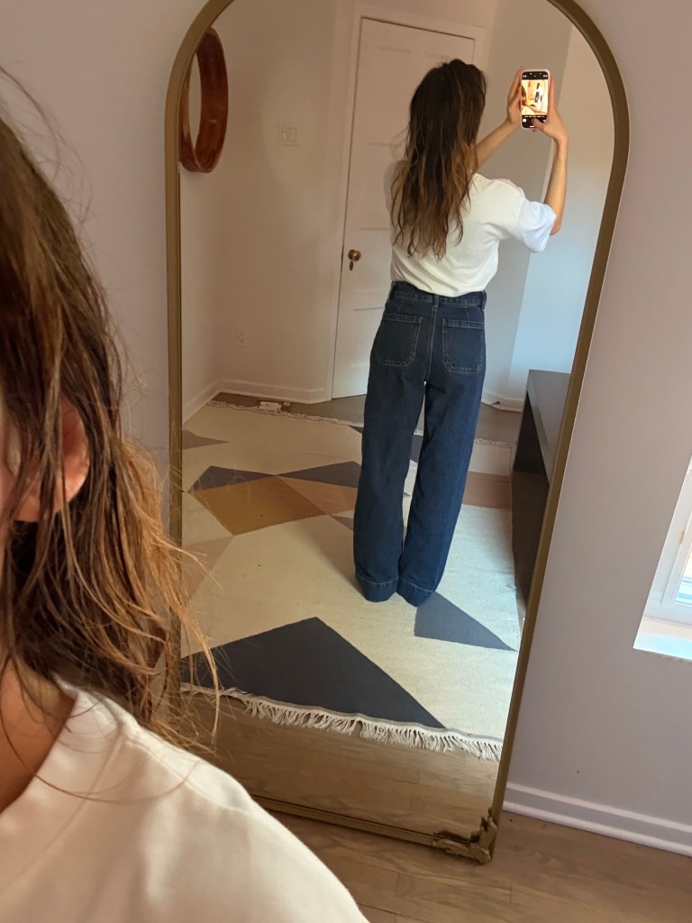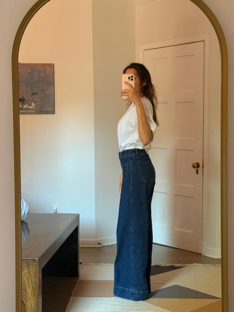 I was excited to play with what I had and start curating a few spring looks. But surprise: neutrals, neutrals, and more neutrals. Beige, white, maybe some navy. Nothing bold, nothing bright—and worst of all, I realized my jeans situation was tragic. Too small, too big, too skinny, too stiff. Even though I love wearing whatever feels right regardless of trends, these jeans just didn’t feel like me anymore. I wanted something looser, cooler, and more 2025.