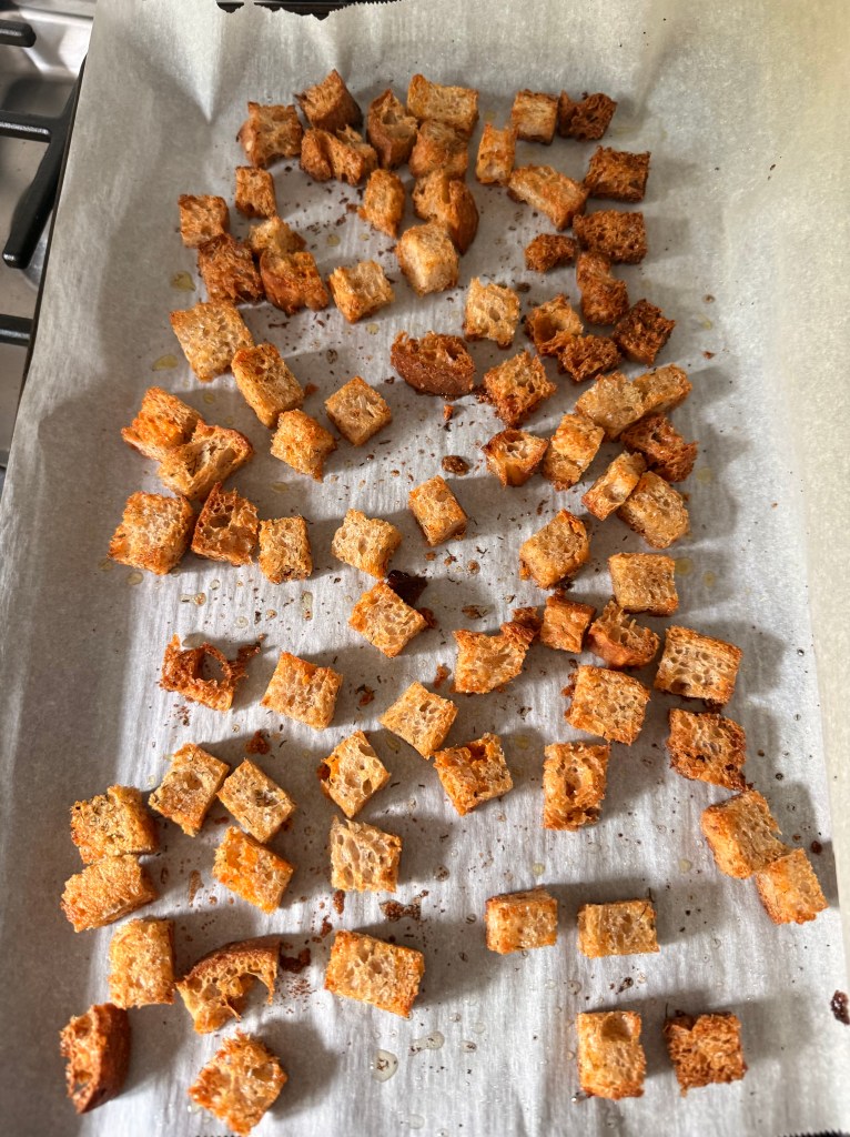 Crouton highlight: Made with homemade sourdough bread from a friend (bless her), crisped up to golden perfection.