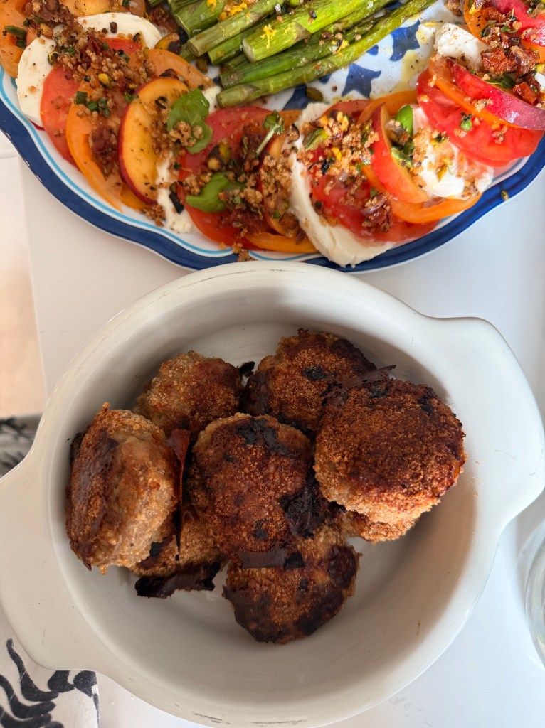 🍑 Lunch: Peach & Heirloom Tomato Salad + Mediterranean Turkey Meatballs