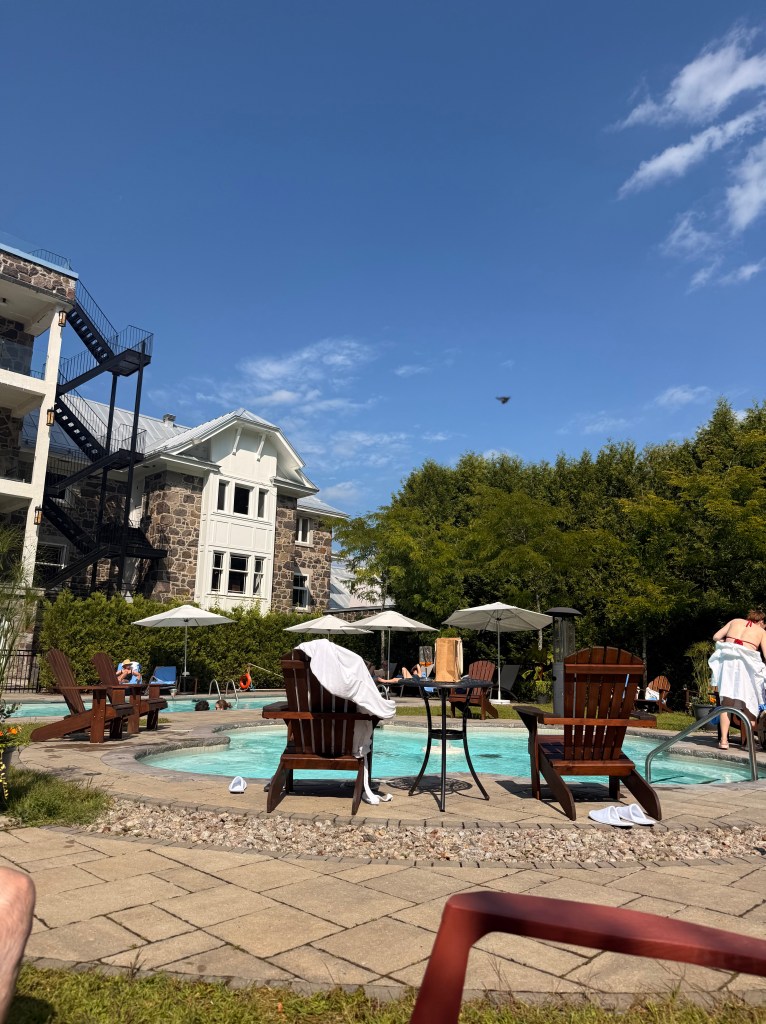 By the time we arrived at StoneHaven, I was already relaxed. At check-in, the concierge smiled and told us we were lucky: our room had one of the most requested balconies in the hotel. A butler escorted us upstairs, and as soon as I saw it, I understood why. The balcony was huge, with lounging chairs and a panoramic view of the forest and pool below. The room itself was elegant and cozy, with a bathroom that could easily double as a spa.