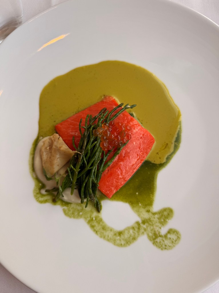 From the very first cocktail to the last bite, it was nothing short of extraordinary. Each dish had a wow factor—that moment when you take a bite and can’t help but look at the person across from you with wide eyes. We paired the dishes with champagne and a few cocktails, which probably explains why I can’t recall every detail of the complex menu. But what I do remember is the feeling: being in culinary heaven, one dish after another, sharing glances of amazement with my husband.