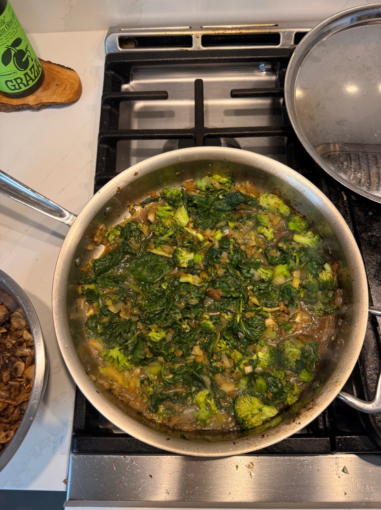 Cook until the spinach is fully wilted and reduced in size.